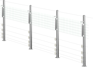 Ограждение состоит из отдельных автономных участков длиной 125м., ограниченных стойками высотой 3м. между которыми находятся стойки высотой 2м., которые в свою очередь делят периметр на участки длиной 4м. На стойки крепятся изоляторы а уже к ним сетчатое заграждение и АКЛ, К каждому участку подключен емкостной датчик «ИСТРУМ-08E» или «ИСТрУМ - ВИЯ», расположенный с внутренней стороны ограждения на стойке в участковом шкафу. Данные о проникновении поступают на дисплей системы сбора и обработки информации «ЛИЛАНА-08», находящейся в помещении дежурного. Разделение на отдельные участки позволяет моментально обнаружить место проникновения, что повышает возможность задержания нарушителя.